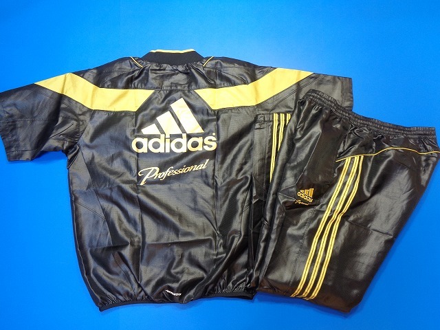 > 15238■送料込み 美品 adidas professional アディダス プロフェッショナル ナイロン ジャージ セットアップ 上下 セット M L 黒 金 半袖