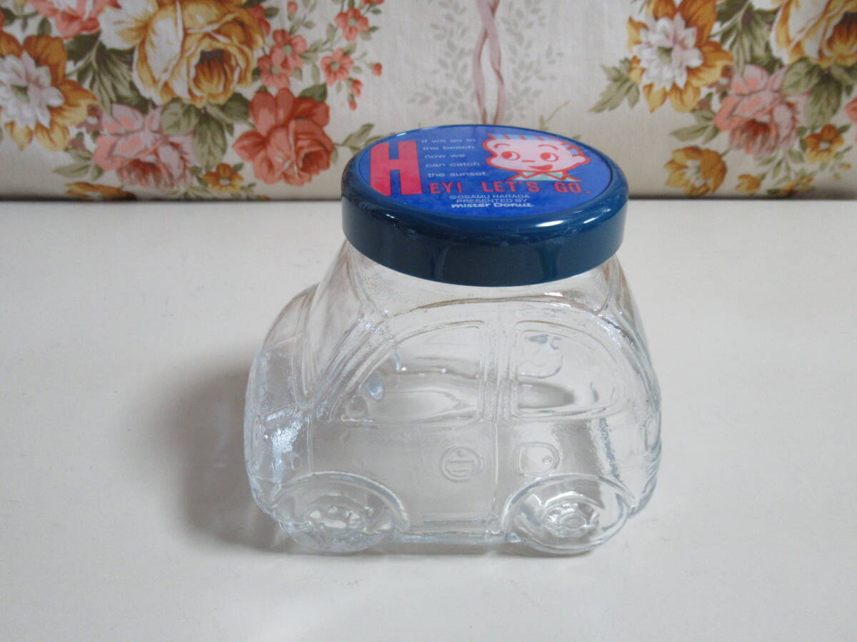 > R7 05★ミスド ハラダ オサム ガラスキャニスター/キャンディーポット 車◆ 非売品 ミスタードーナツ 昭和レトロ