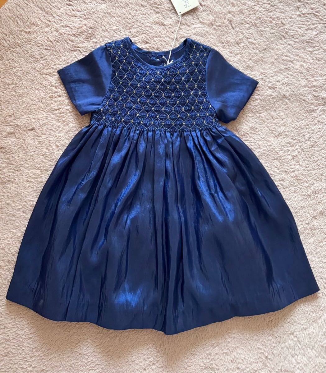 - Malvi & Co. マルヴィ サテンスモッキングワンピース 90cm 新品タグ付き