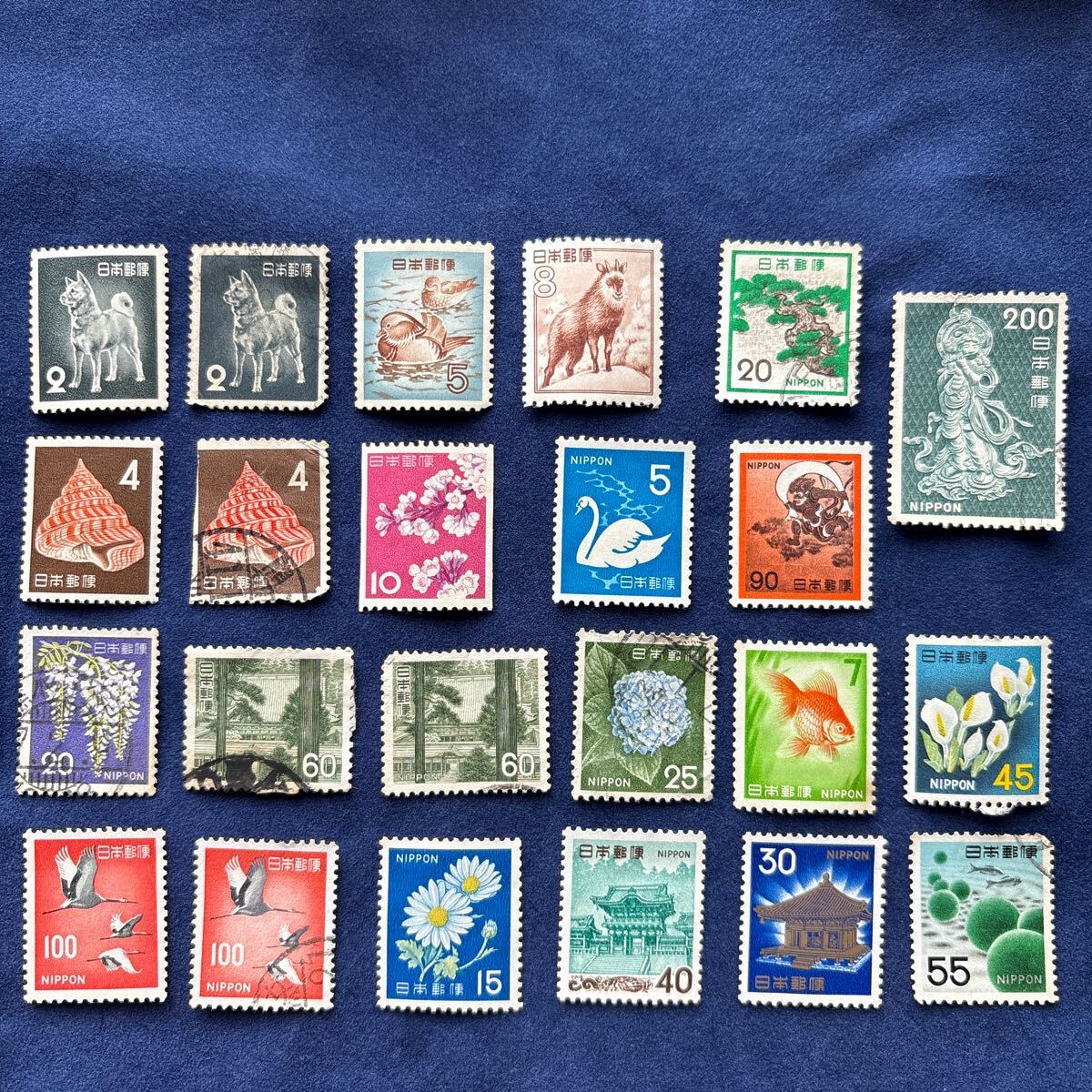 - 日本切手【動植物国宝図案】未使用多数 23枚 ローマ字入り まりも 丹鶴 迦陵頻伽 音声菩薩像 コイル 昭和 ローマ字入 希少 古切手 送料無料