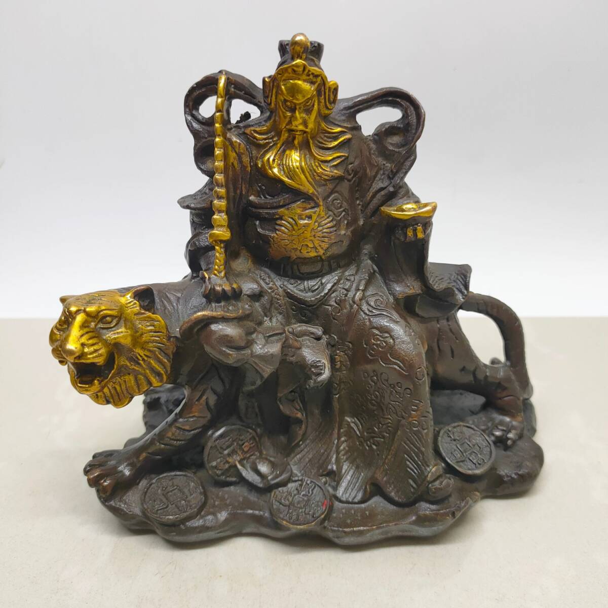 - 【超珍館蔵】黄銅製 塗金 武財神趙公明像 仏像 宗教 仏教古美術 供養品 古賞物 古董品 古美術品 時代物 旧家蔵出 稀少珍蔵品