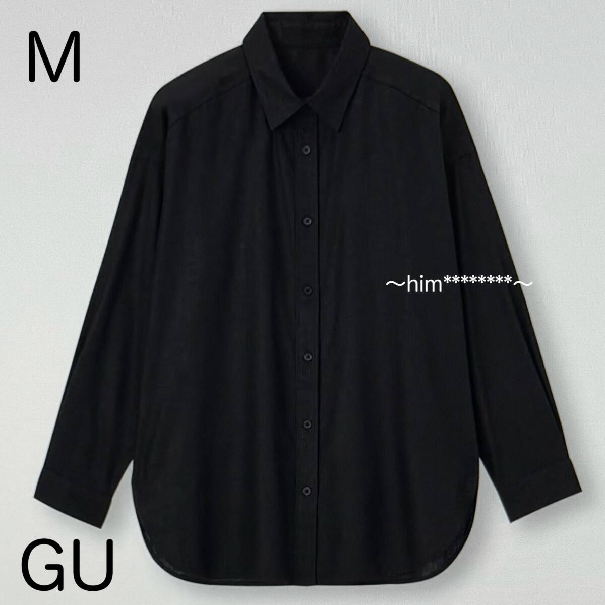 > ジーユー GU リネンブレンド オーバーサイズシャツ (長袖) 黒 ブラック M 人気商品 完売