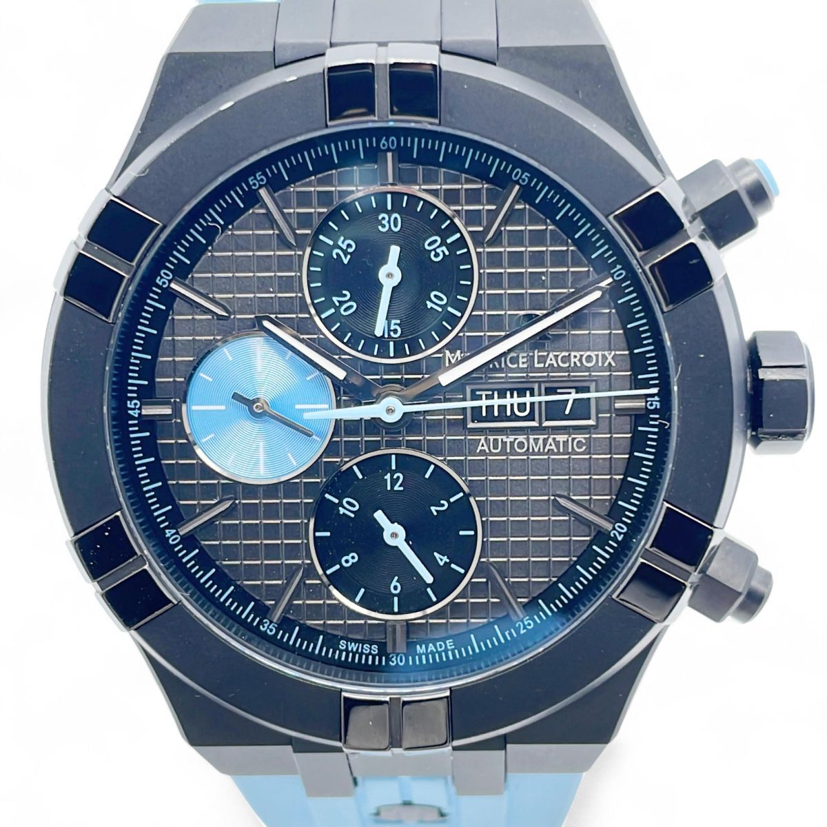 - K5021 MAURICE LACROIX モーリス・ラクロア AI6038-DLB01-330-4 アイコン クロノグラフ 黒 ラバー AT メンズ AZ37947 裏スケ 箱 ギャラ