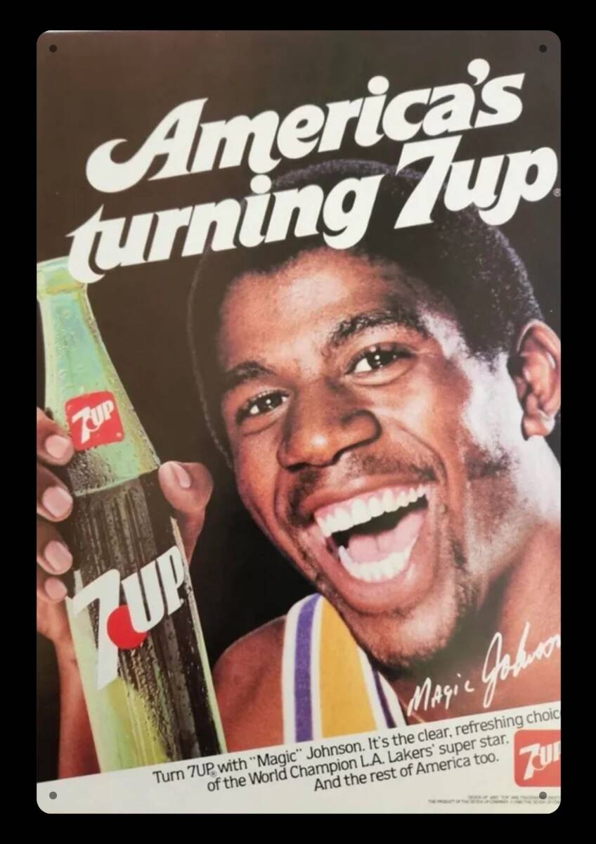 - USA看板シリーズ / マジック・ジョンソン COOOL!! セブンアップ アメリカ・レトロ広告 / 新品看板 / 送料無料!!