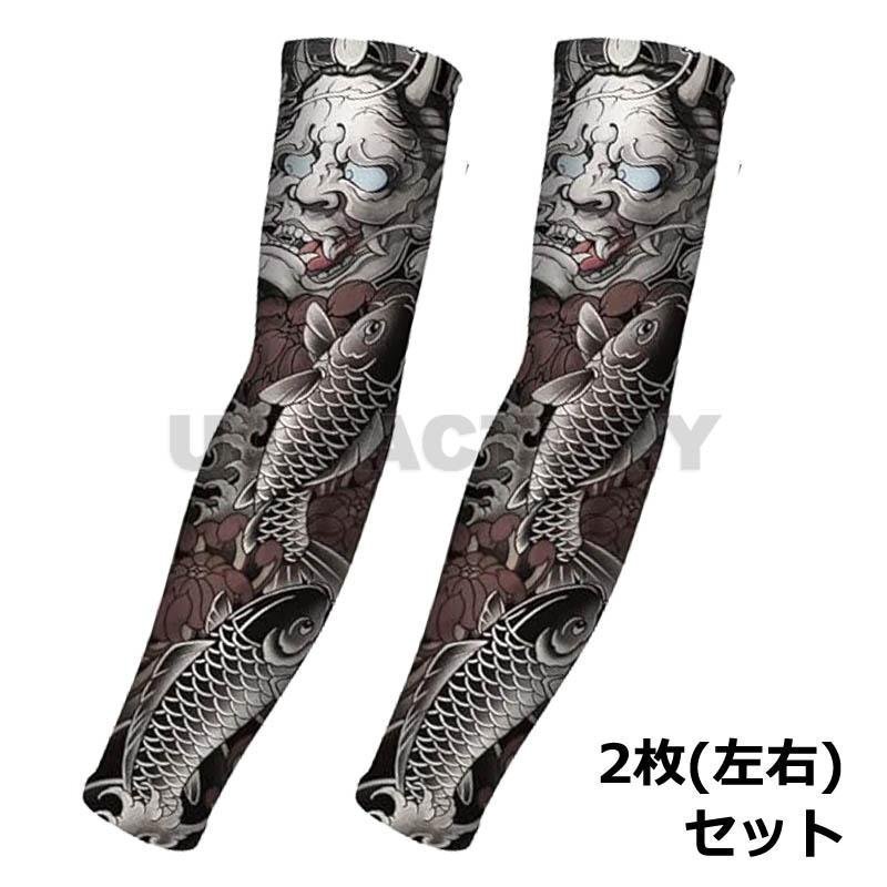 - 【タトゥーアームカバー】★和柄 鯉 般若 左右 2枚セット 和風 伸縮素材 タトゥースリーブ 腕カバー 日焼け UV対策 おしゃれ carp