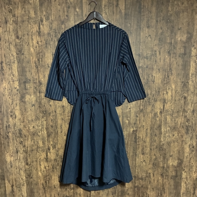 > A432◇Corte Largo | コルテラルゴ ストライプ切替ワンピース ネイビー×ホワイト レディース Mサイズ 中古品