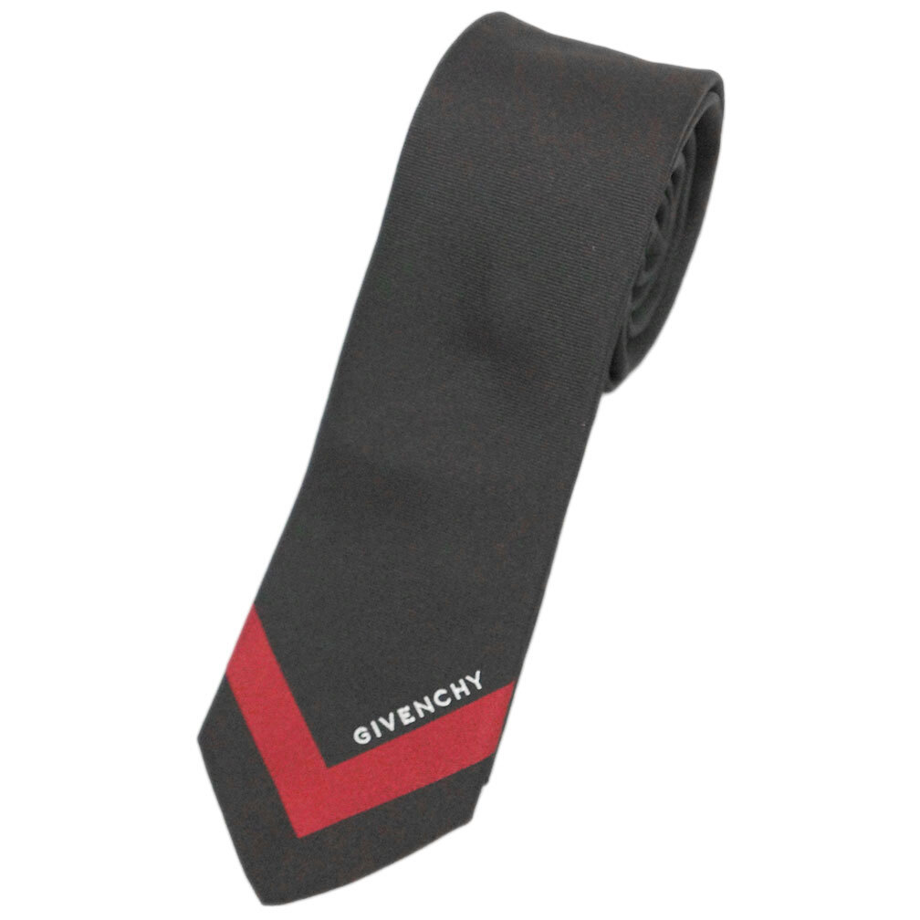 - 未使用 ジバンシィ ブランド ネクタイ GIVENCHY ジバンシー メンズ ナロータイ ロゴ ライン シルク 100% ブラック レッド 31202