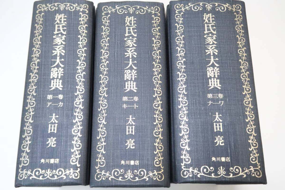 > 姓氏家系大辞典・3冊/太田亮/文学博士・三上参次・上田万年監修/全国の姓氏を50音順に収録し起源・分布・本家と別家の関係・家紋などを解説