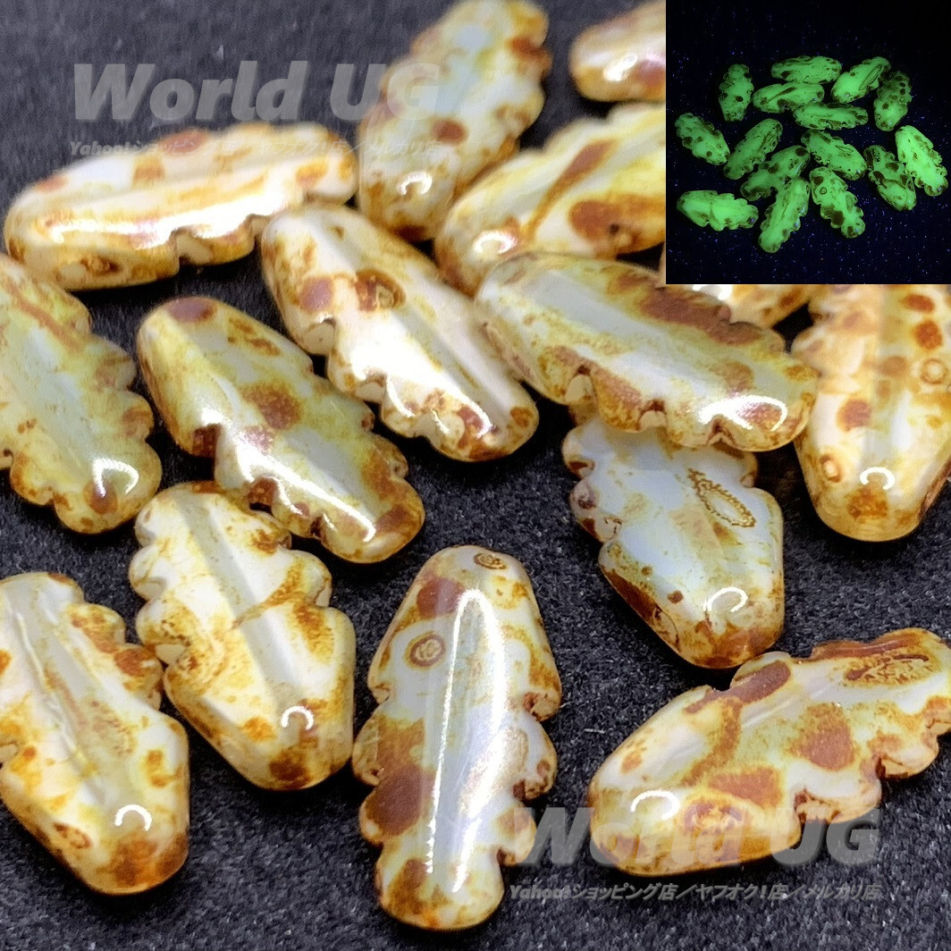 - ウランガラス ソウブレード(ノコギリ刃)ダガービーズ 乳白色/金茶色2トーン 14mm 15粒