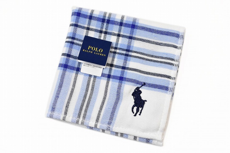 - ポロ ラルフローレン タオルハンカチ 1枚 メンズ ブランド ホワイト ブルー タータン チェック ロゴ 刺繍 男性 紳士