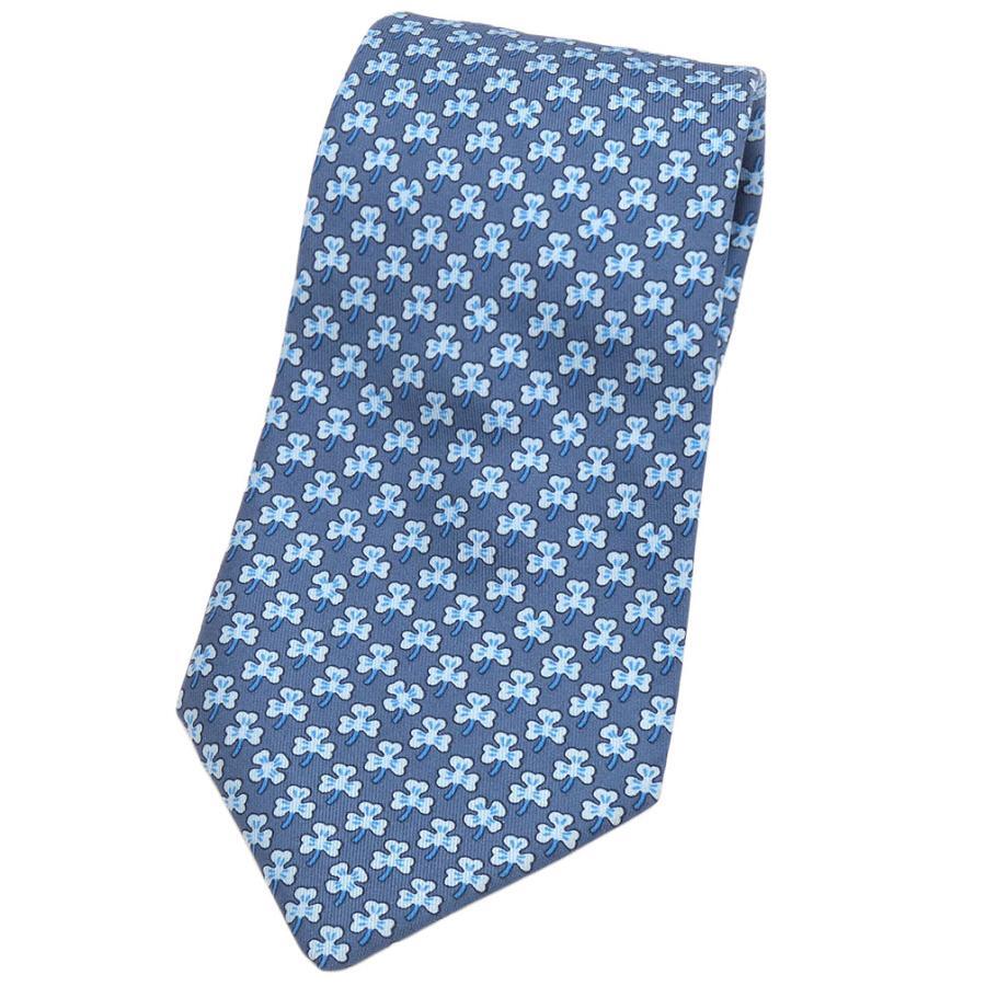 - 美品 エルメス ブランド ネクタイ HERMES 高級 シルク 100% ワイドタイ クローバー 三つ葉 ネイビー ブルー 紺 青 水色 メンズ 5005EA