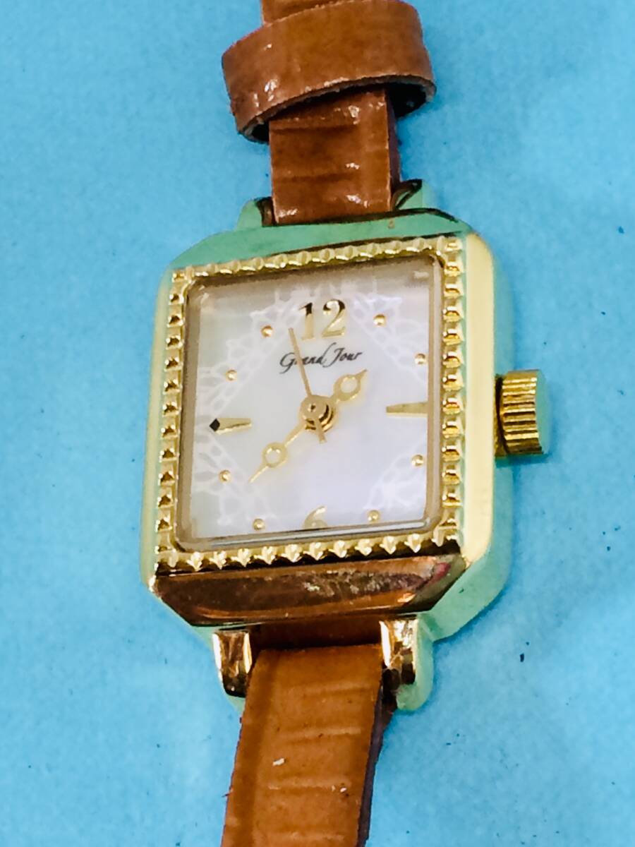 - (f52)気品あふれる(*'▽')グランジュール・Grard・Jaur(電池交換済み)ゴールドレディス腕時計USED(送料全国一律185円)素敵な時計。