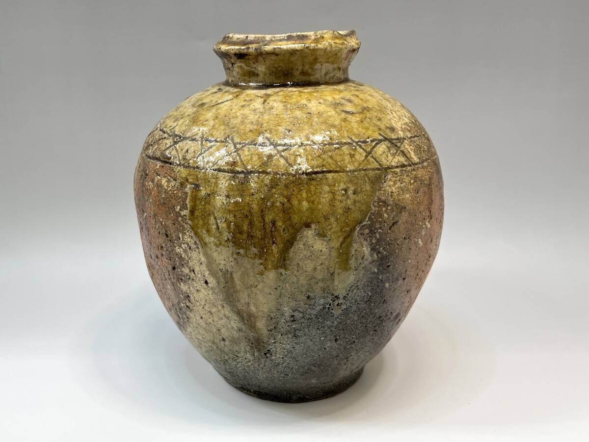 - 作家物!越前焼 義博作 花瓶 壷 直径最大22cm 全高約26cm 花器 陶器 陶芸 伝統工芸 工芸品 時代物 骨董 B ⑤
