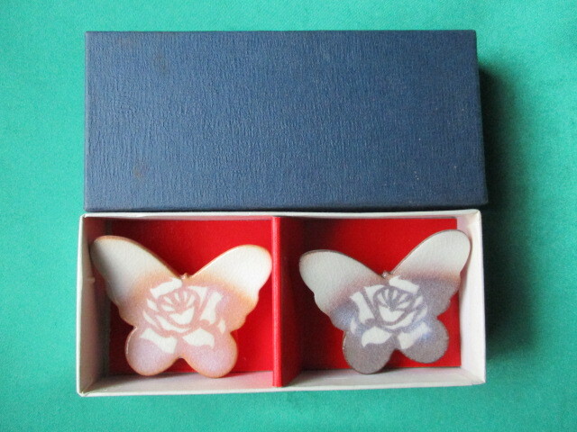 - ちょう・チョウ・蝶形 ばら・バラ・薔薇図 箸置 2客セット 未使用品