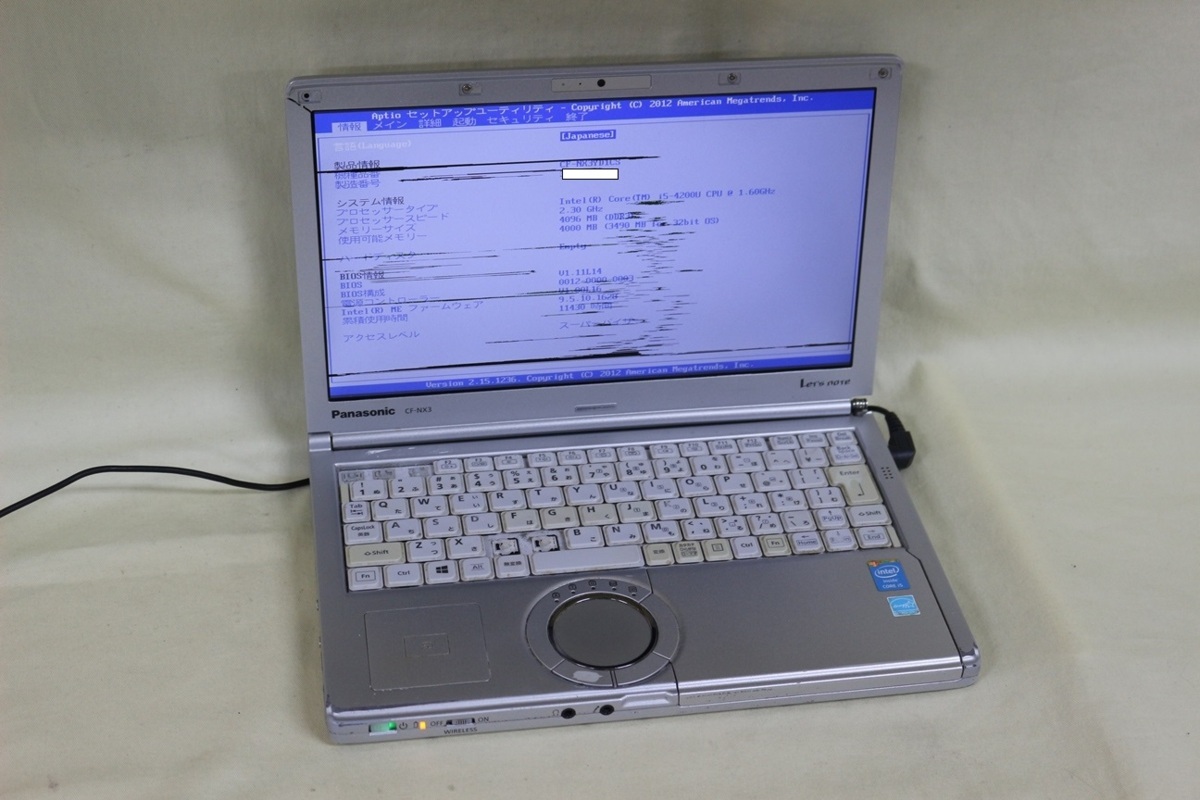 > ジャンク品ノートパソコン Panasonic Let's note CF-NX3 COREi5 メモリ4GB HDD無 12.1inchワイド カメラ内蔵 起動確認済 代引き可