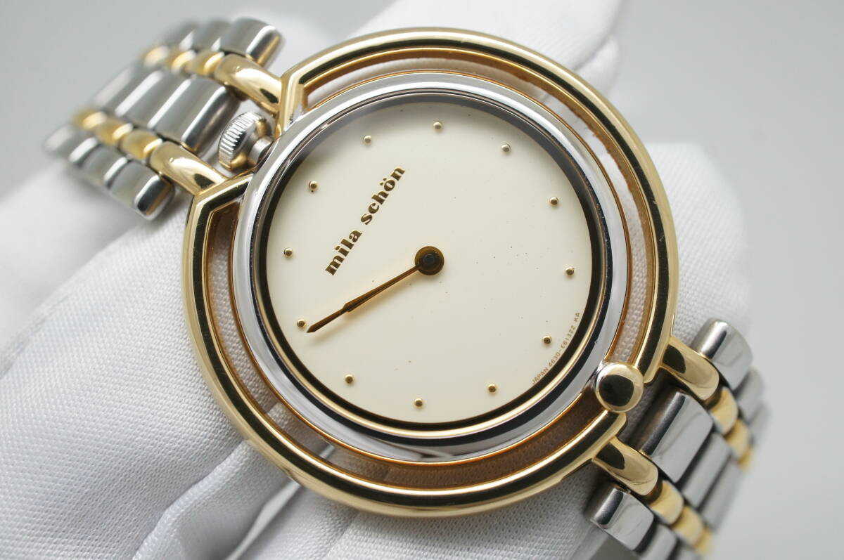 - E125●作動良好 美品 mila schon ミラショーン アイボリー文字盤 メンズボーイズ腕時計 コンビ お洒落 クォーツ