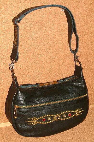 フロントに熟練職人の手作業によるスタッズ装飾が施された、とてもデザイン性の高い豪華なオールレザー製のショルダーバッグです!