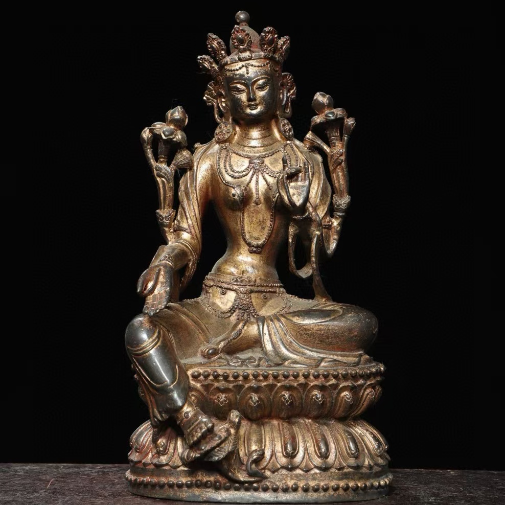 - 仏像 清代 旧蔵 仏教の古銅拓金【緑度母】仏像造像を家に奉る 銅製 銅琉金 仏教 唐物 收蔵品 時代物 細密造 古置物 希少珍品 供養品 5.31