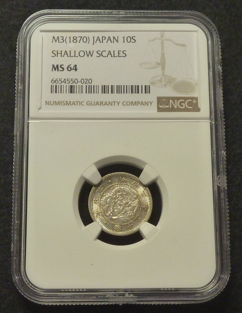 - ☆★旭日竜10銭銀貨 明治3年 PCGS MS64★☆