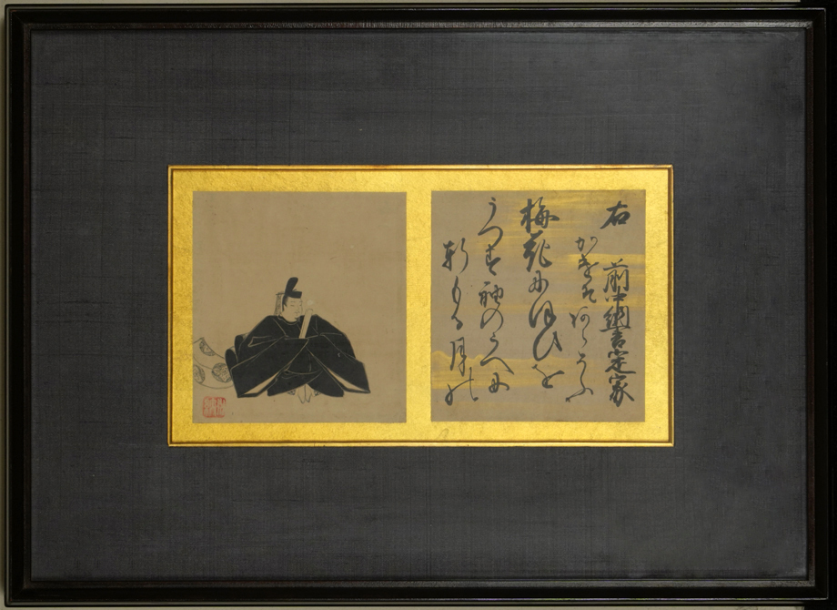 - 【真作】「狩野永納 新三十六歌仙 定家 額装」江戸前期 狩野派 絵師 山雪長男 狩野安信師事 御所障壁画 書画