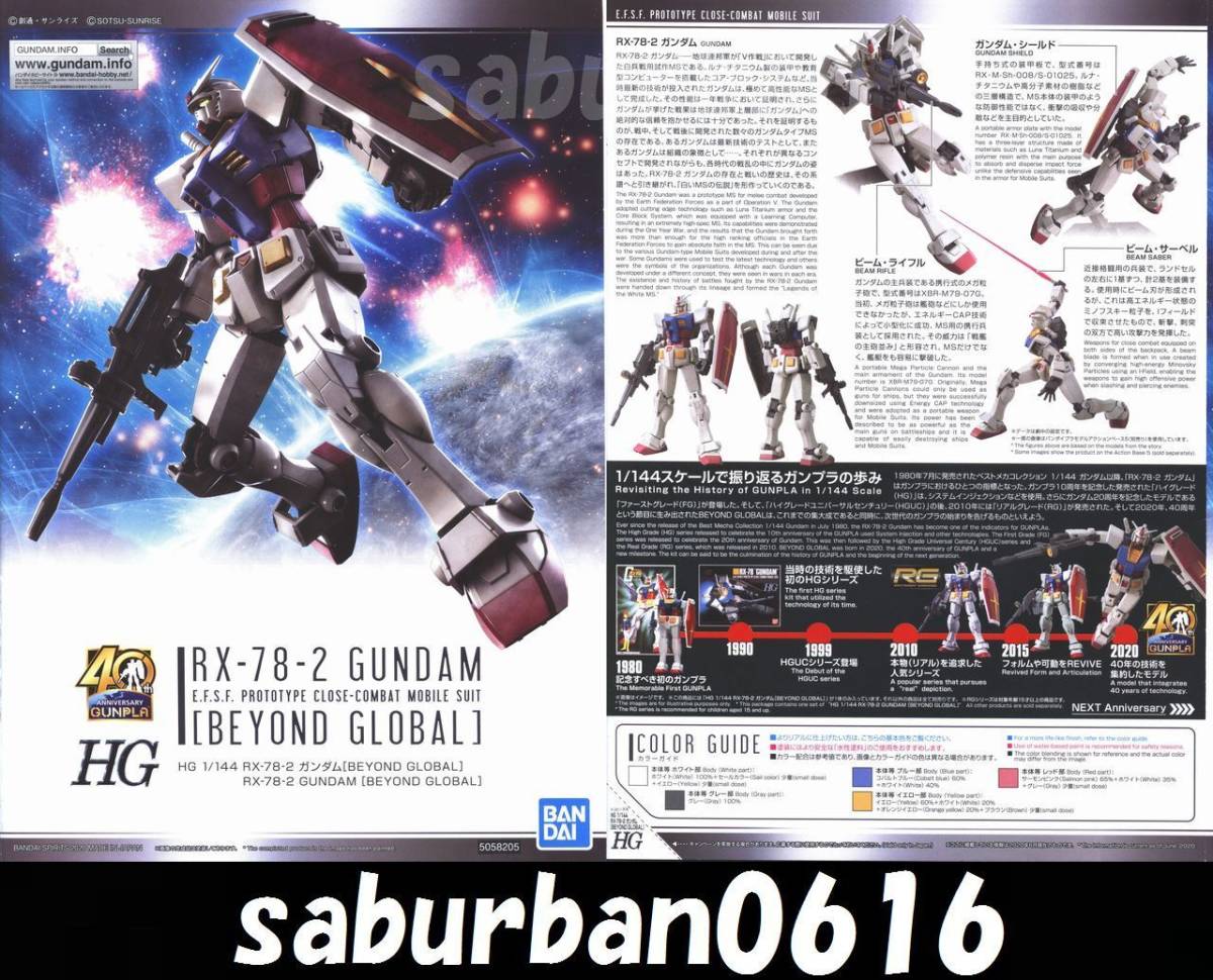 - G0201説明書 1/144 HGUC RX78-2 40th BEYOND GLOBAL Ver HG ビヨンド グローバル 機動戦士ガンダム 2号機 1st ファースト 0079初代バンダイ