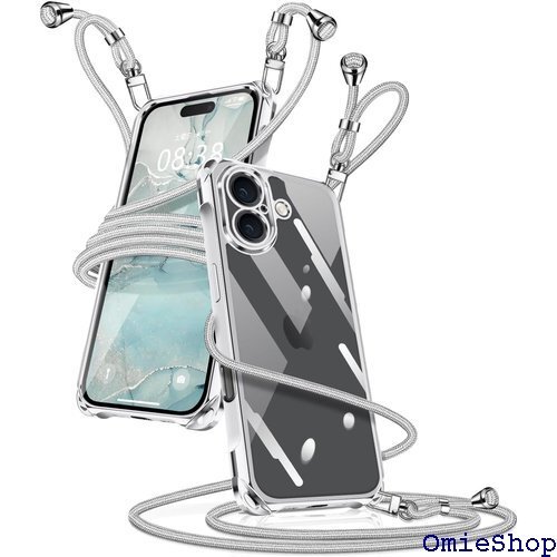 - iPhone 16 用 ケース クリア ショルダー i し可能 落下防止 紛失防止 ワイヤレス充電対応 シルバー 2092