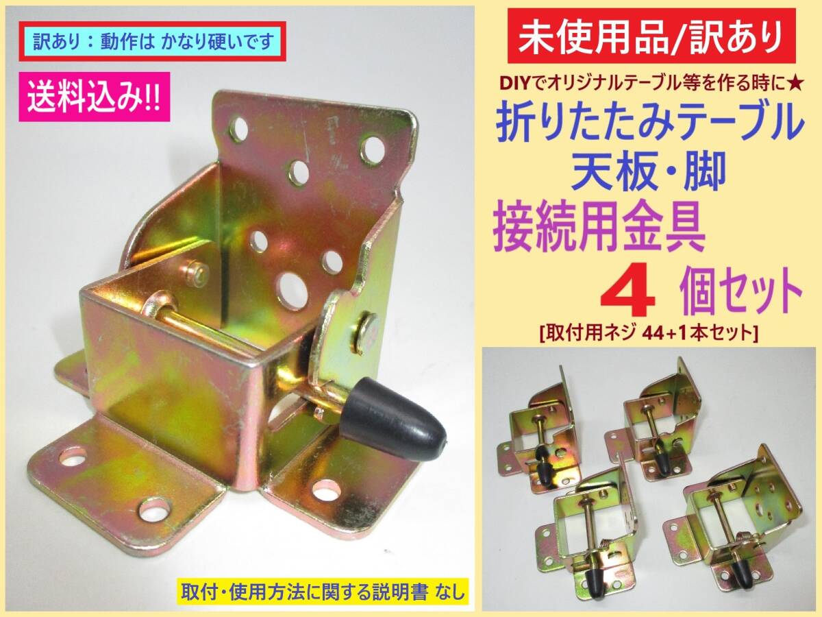 - 訳あり 未使用 折りたたみ テーブル 天板 脚 接続 用 金具 4個 K キズ 動作硬い 取付用 ネジ 付き 折れ 足 机 台 DIY 部品 修理 鉄 海外製
