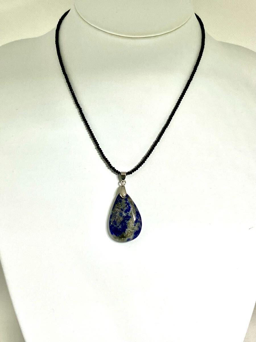 - 【新品】ラピスラズリネックレス*大ぶり*シンプル*パワーストーン*ブラックスピネル*天然石ネックレス*希少*12月の誕生石*雫型