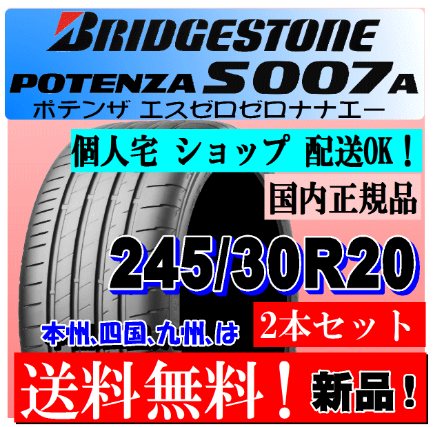 - 245/30R20 90Y XL 送料無料 2本価格 ブリヂストン ポテンザ S007A 新品タイヤ 正規品 個人宅 ショップ 配送OK POTENZA