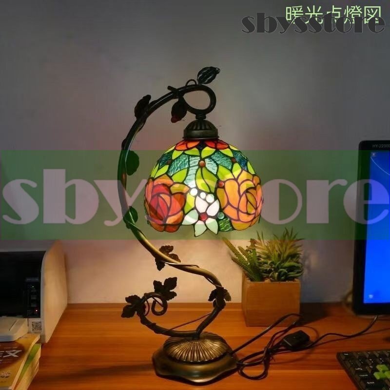 - ステンドグラスランプ アンティークテーブルランプ ナイトスタンド デスクライト ティファニー レトロ 01