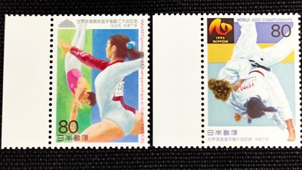 > [25060313]【スポーツ世界選手権大会記念】単片2種完「柔道・体操」80円×2 1995年発行 美品
