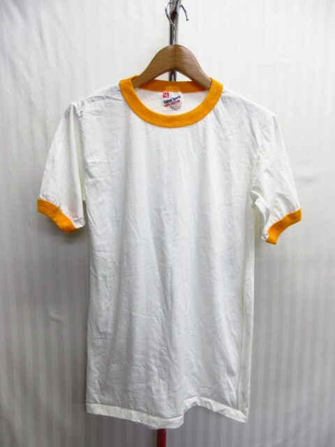 > USA製 United Sports 90sヴィンテージ リンガーTシャツ メンズUS S Mサイズ 白Tシャツ クルーネックシャツ アメリカ製 無地Tシャツ06031