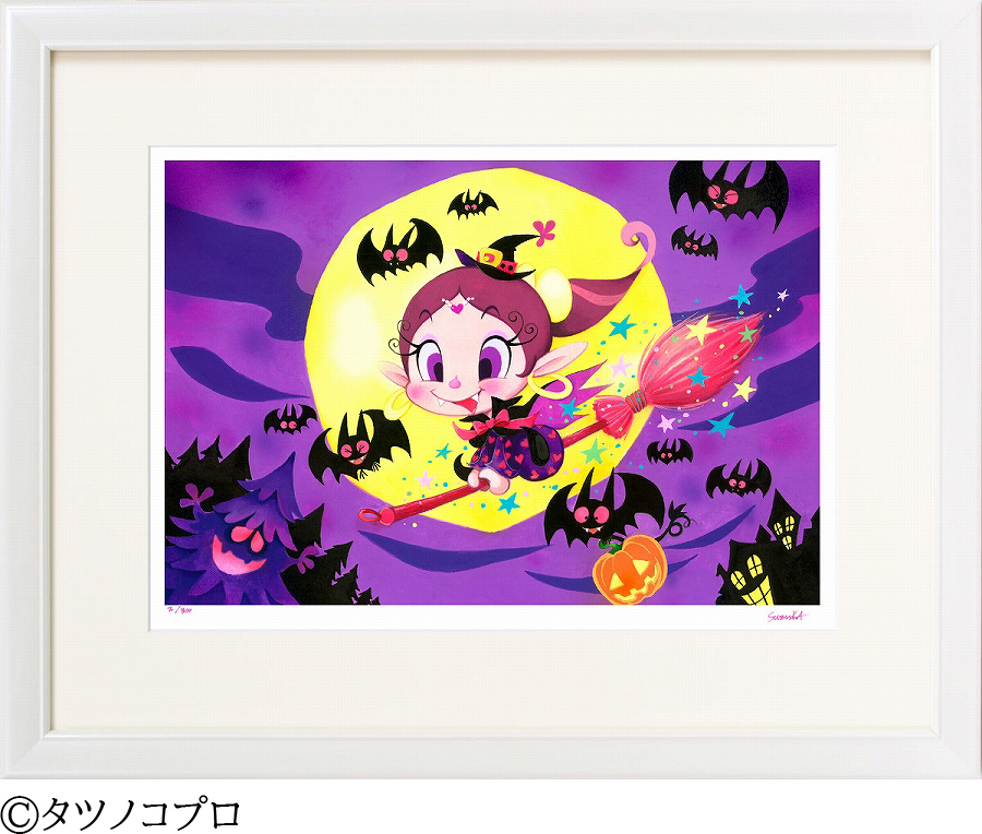 - ジークレー版画 額装絵画 吉田すずか 「ハロウィンアクビ」 半切