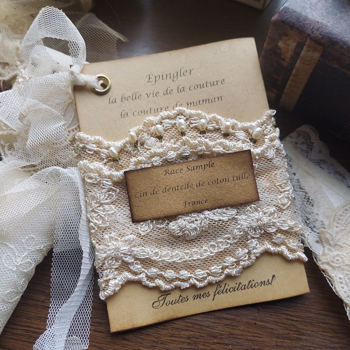 > アンティーク風 まち針シート レース コーヒー染め エパングル リボン フレンチ ハンドメイド まち針 メルスリー 送185 手芸