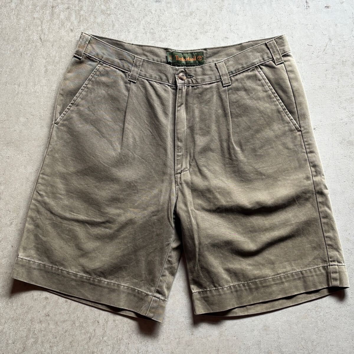 > 【90s】Timberland ティンバーランド コットン チノショーツ ハーフパンツ 短パン ツータック メンズ W32 カーキ vintage 古着 USED 正規