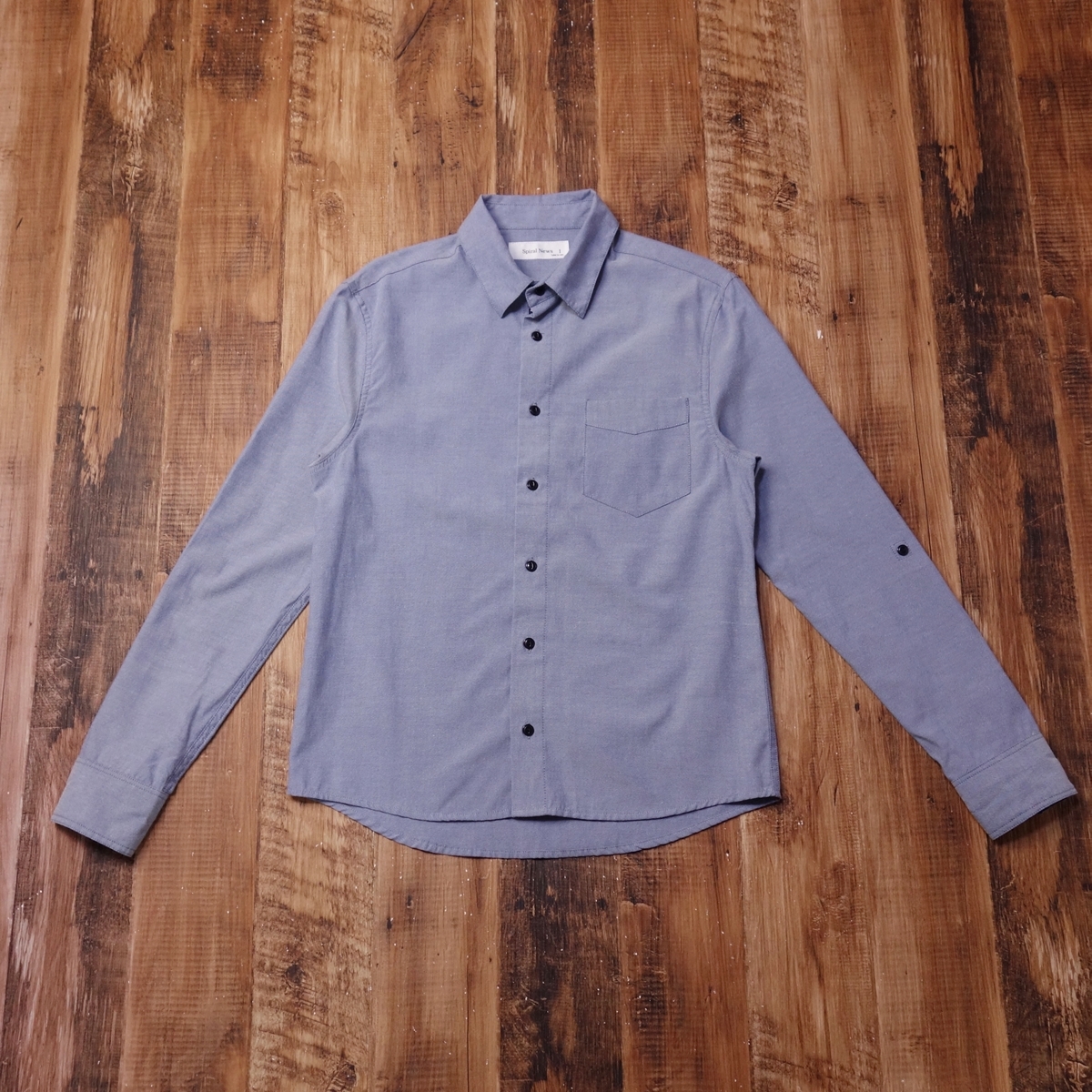 - 美品 スパイラルニュース Spiral News 長袖ロールアップスリーブシャツ メンズ シャンブレー ドット柄 カジュアル 1 Sサイズ ブルー LO46