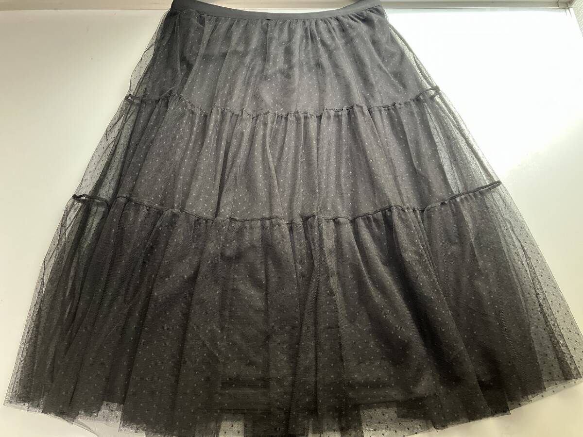 - 訳あり■大きいサイズ4L■ウエストゴムチュールレース切替フレアースカート■ブラック水玉