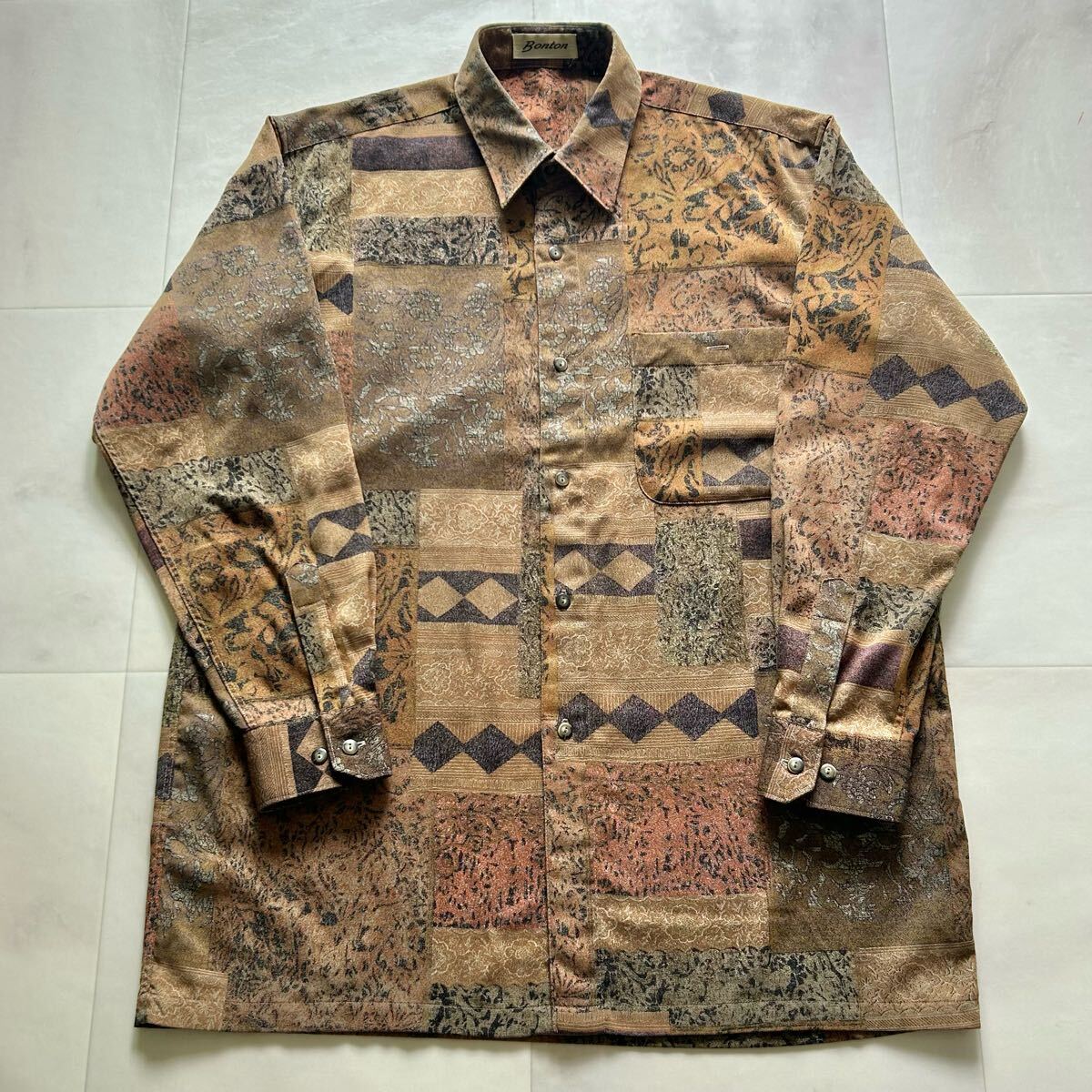 - Bonton 総柄 柄シャツ レトロ アート ビンテージ 長袖シャツ ポリエステル100%
