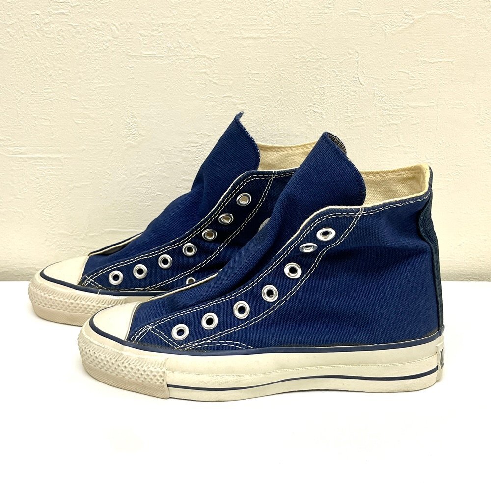 > e) CONVERSE コンバース ALL STAR 76-80s ネイビー系 ハイカット スニーカー size4 7ホール 囲みロゴ USA製 ヴィンテージ 経年品