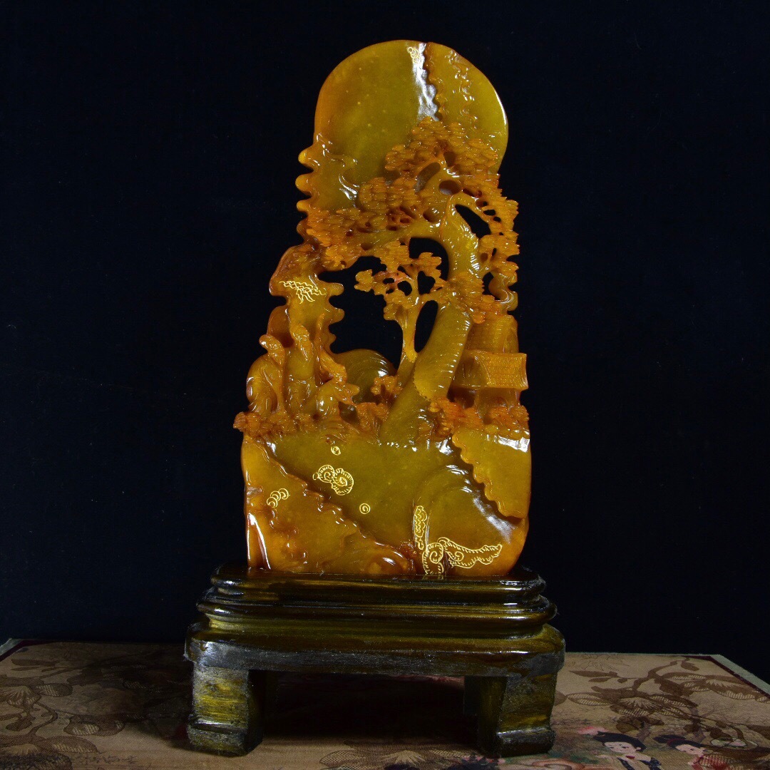- 蔵友旧蔵出 寿山石 田黄石 細密彫 鏤空彫 深山訪友 箱付 貴重品 稀少物品 置物 賞物 中国時代美術品