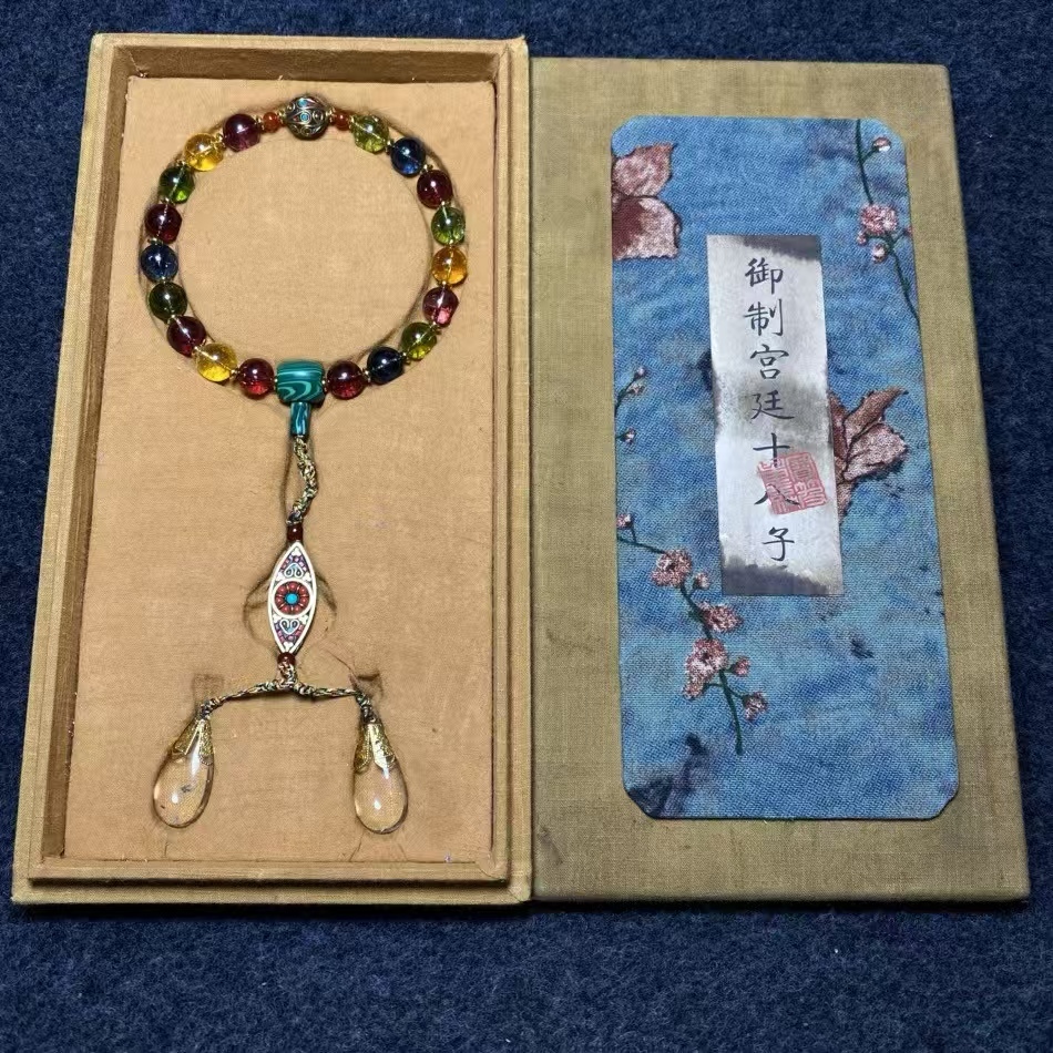 - 秘藏 清代 宮廷御製十八子収蔵箱内の秘蔵碧璽十八子を手に 唐物 古玉彫 天然石 稀少珍品 古美術 古賞物 置物 旧蔵 玉佩 裝身具 吊墜 6.6