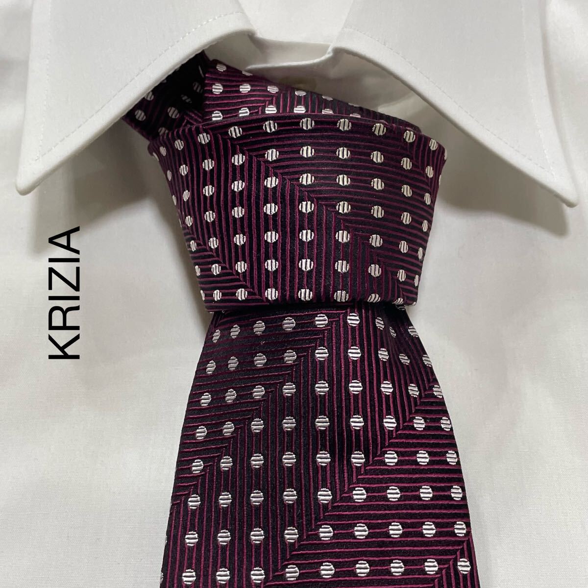 - KRIZIA クリツィア 水玉 切替 ストライプ ジャガード シルク ネクタイ ワイン ブラック ホワイト TG1628