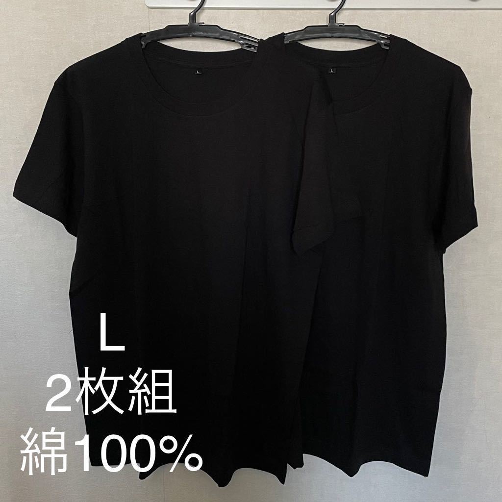 - 2枚組 L クルーネック Tシャツ 綿100% 黒 ブラック 丸首 半袖 アンダーウエア 男性 紳士 下着 メンズ インナー シャツ 半袖 シャツ ♪