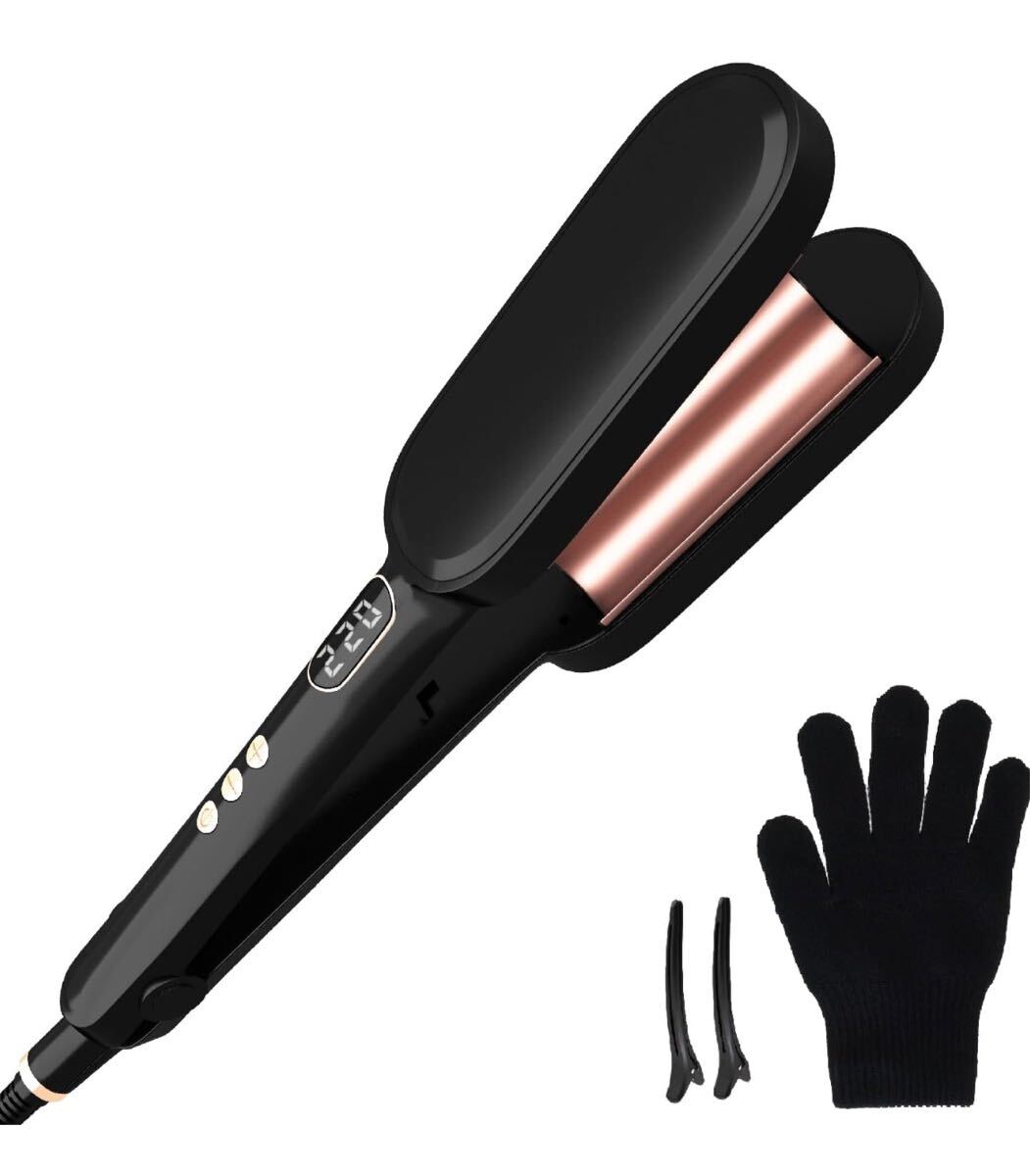 - カールアイロン 32mm ウェーブアイロン 挟むだけ ヘアアイロン 140℃~220℃ ワッフルアイロン5段階温度調節 やけど防止