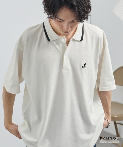 - 新品♪KANGOL≪カンゴール≫ 別注 ロゴワンポイント刺繍ライン オーバーサイズ 鹿の子ポロシャツ メンズ♪♪Lサイズ♪オフホワイト♪