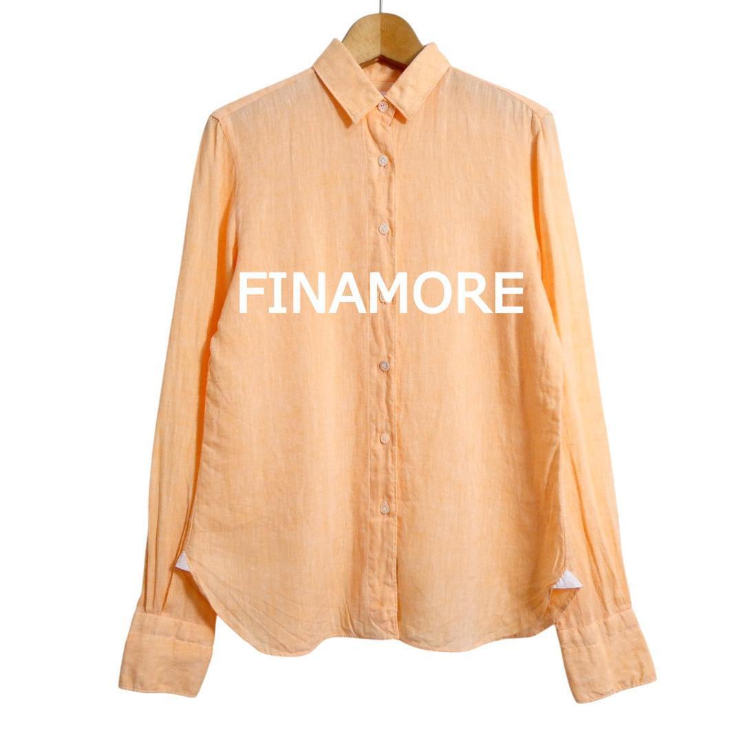 - 美品 Finamore フィナモレ サイズ40 麻 リネン100% 長袖 シャツ ブラウス オレンジ