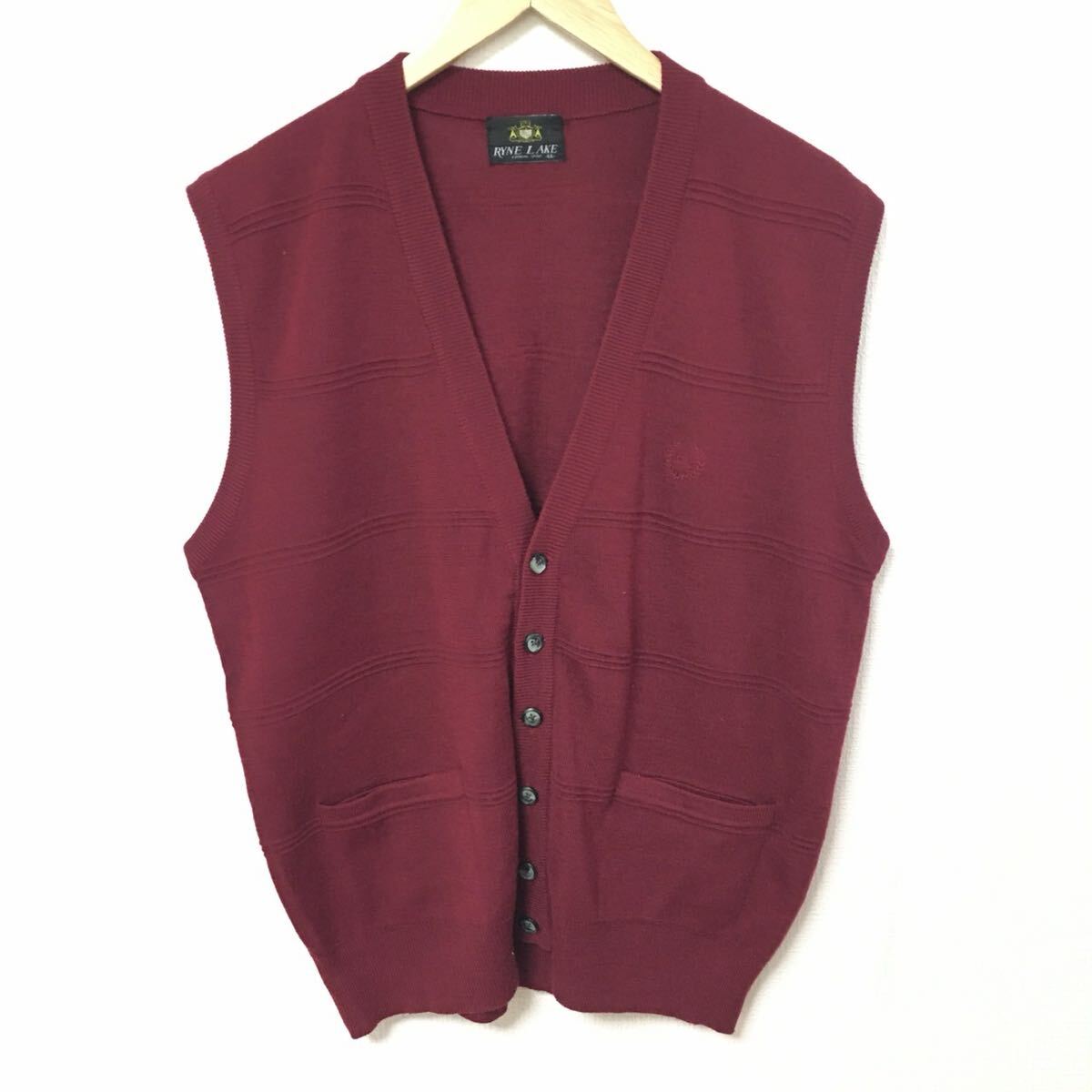 > 【RYNE LAKE】ラインレイク ベスト Vネック フルボタン ニット ロゴ ゴルフ カジュアル ゆったり ダークレッド メンズ サイズLL/Y32144fF