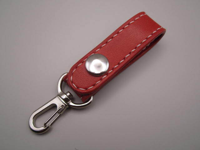 - 栃木レザー シンプル「赤」ベルトループ キーホルダー キーリング ハンドメイド サドルレザー
