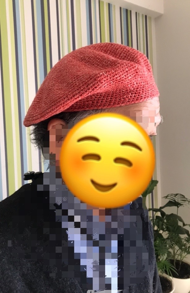 - 即決/手編み ハンドメイド/ゆったり★ウールシルク★朱色明るいレンガ/ベレー帽 帽子 ニット キャップ/シンプル 無地/男女兼用