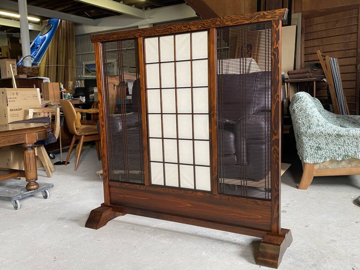 - 筬格子と障子の衝立 パーテーション/間仕切り/和家具▼店舗什器インテリア